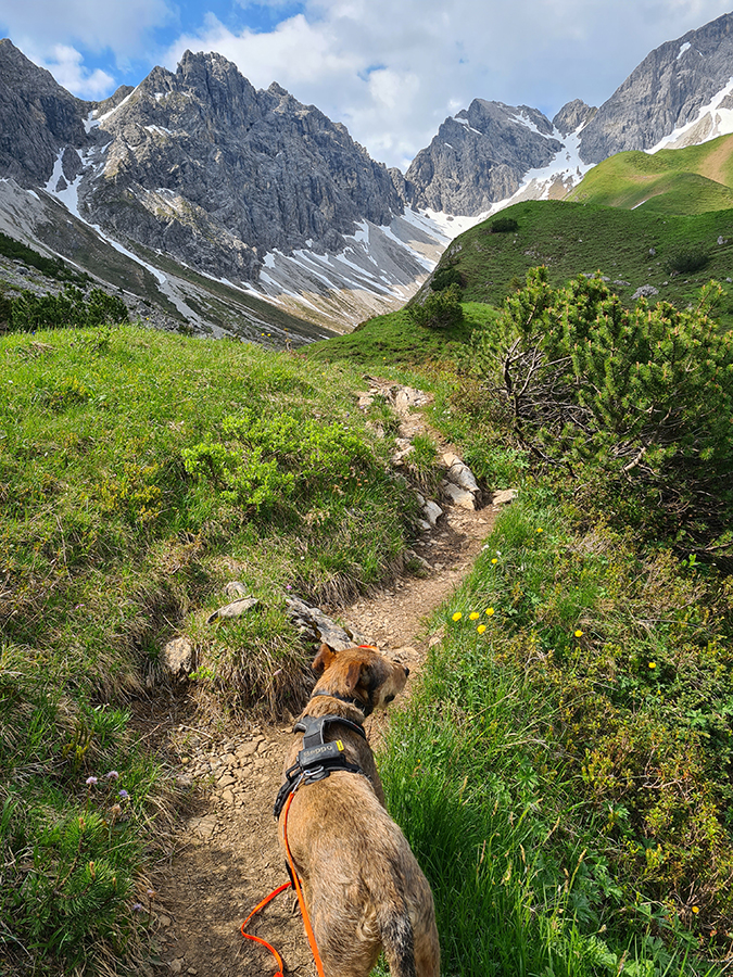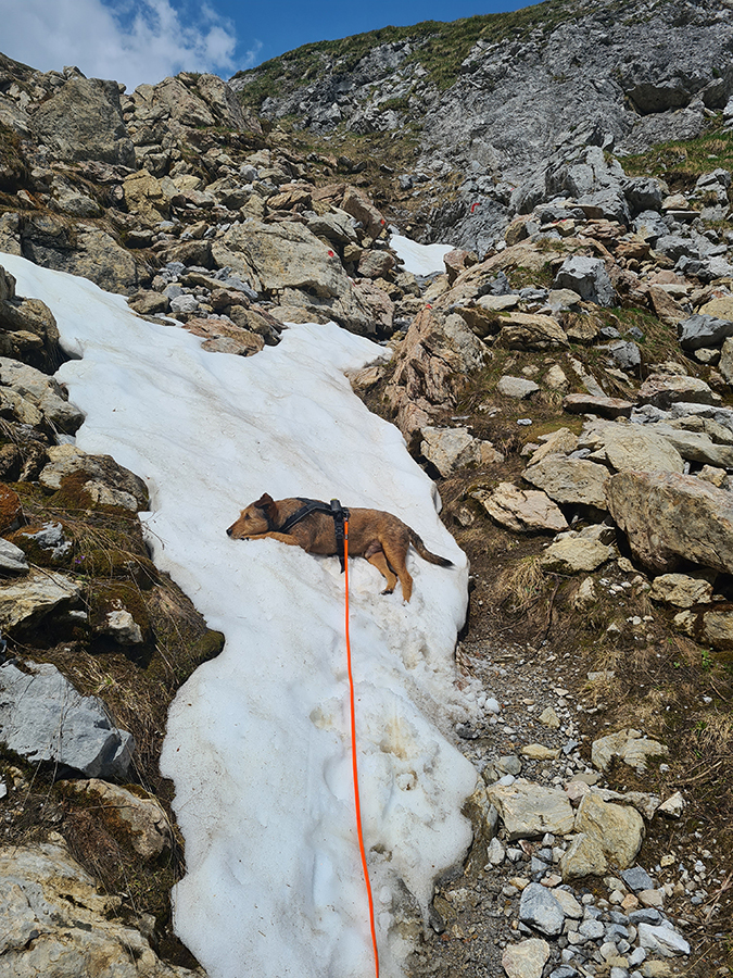 Bezüglich Beppo wollte ich herausfinden, wie er mit den Anstiegen zurechtkommt, wie er auf die Hitze reagiert, wie seine Fußballen auf die spitzen Steine reagieren und wie er und ich zusammen im Berg harmonieren. Kurz und knapp: Ich wollte mich mit meinem Teampartner eingrooven.
